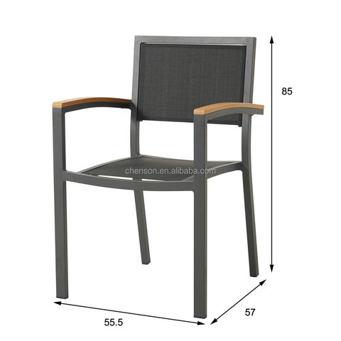 Silla trasera apilable para exteriores, sillas de comedor para patio, silla de comedor de jardín de aluminio utilizada en restaurante con reposabrazos